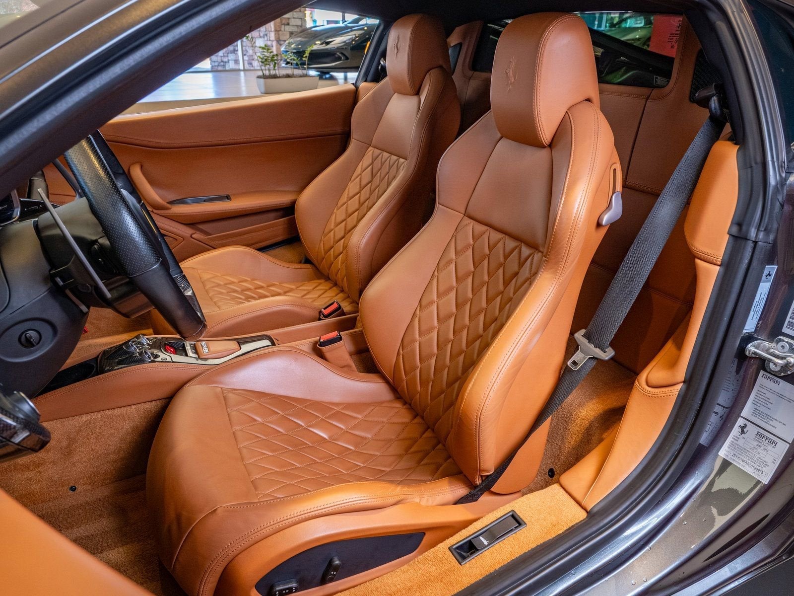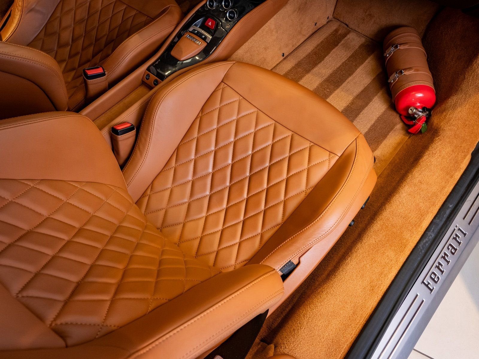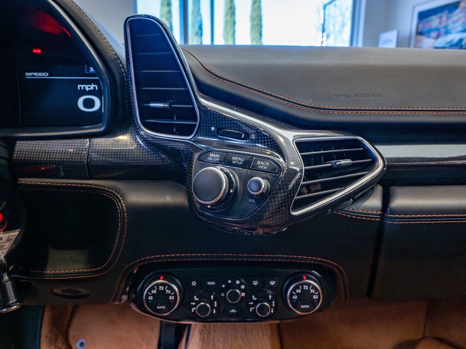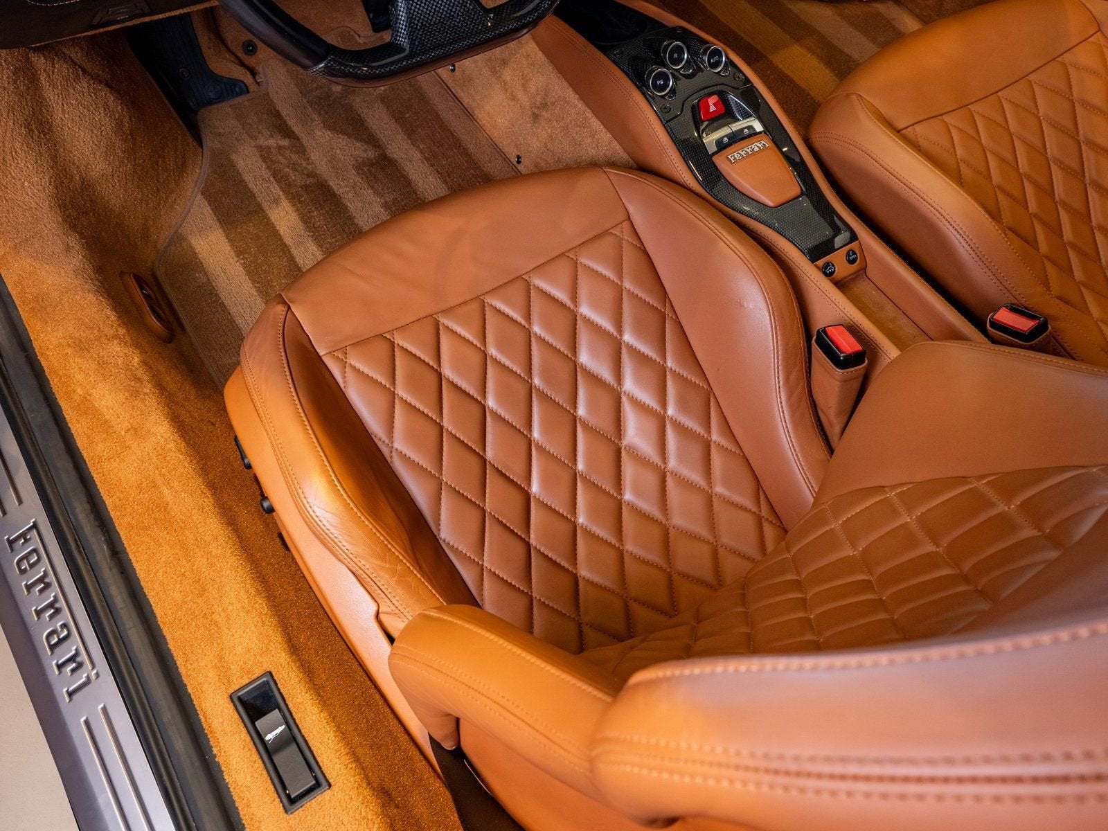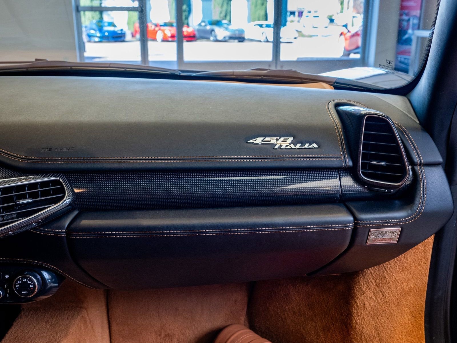 The 458 Italias sleek, wind-tunnel-sculpted body is elevated by purposeful details, including a carbon fiber steering wheel with LEDs and carbon fiber center console, giving this example a distinctly sporting edge while staying true to Ferraris luxurious ethos.