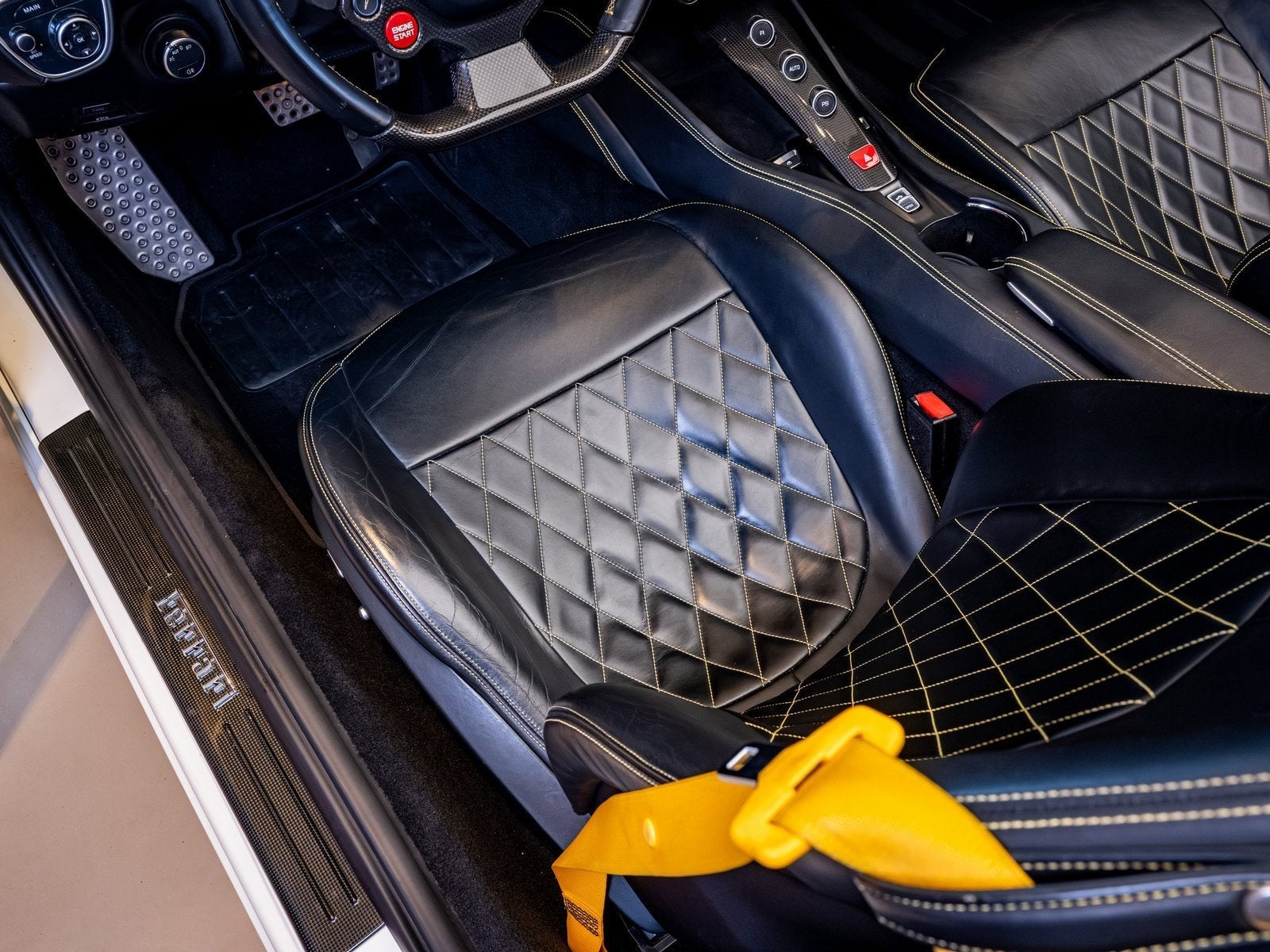Inside, the cabin is tailored for comfort and sophistication, featuring Diamond pattern seats in Nero leather offering a luxurious, textured finish with classic Ferrari flair. The retractable hardtop transforms the California T from a refined coupe into an open-air roadster in just seconds, making it ideal for grand touring along the coast or spirited weekend drives.