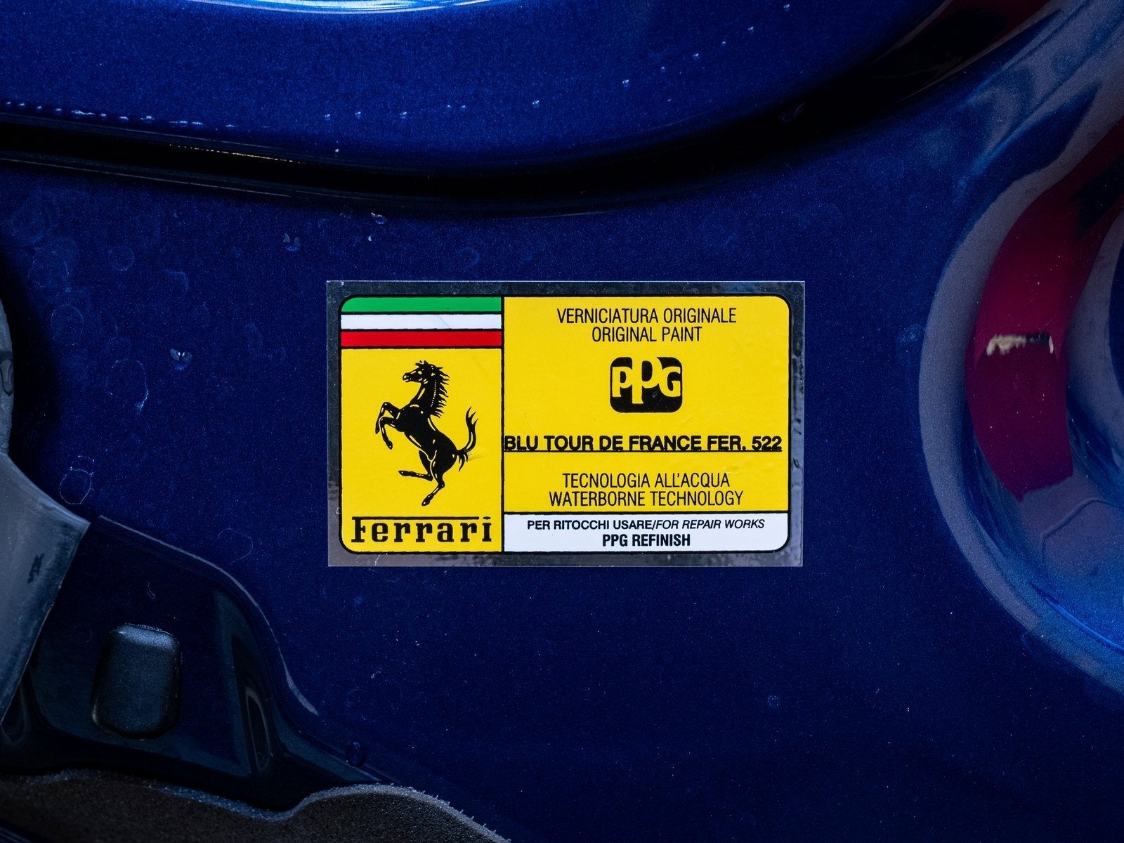 Inside, the cabin is appointed in rich Charcoal leather and fitted with Daytona full-electric seats, blending iconic Ferrari styling with modern comfort and adjustability. The carbon fiber steering wheel with LEDs places shift lights and essential controls directly at your fingertips, reinforcing the cars race inspired DNA. A premium Hi-Fi system ensures that every drive is accompanied by exceptional sound quality, whether enjoying music or the symphony of the V8.