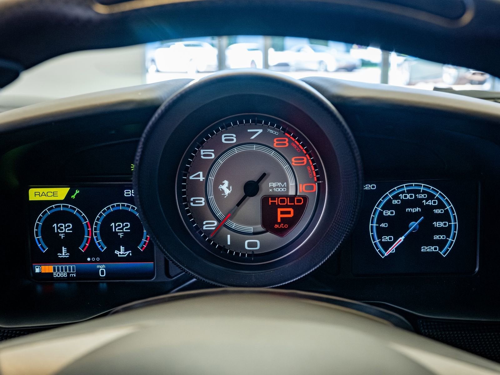 Carbon Fiber Driver Zone with LEDs: F1 inspired steering wheel with integrated shift lights and driver controls.