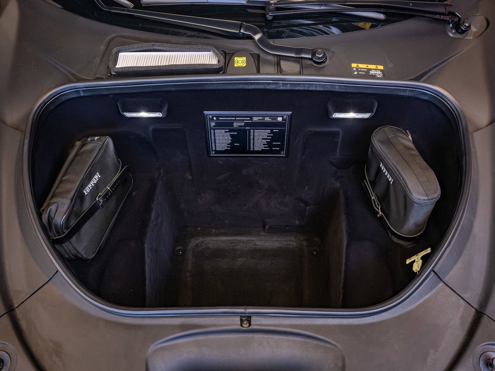 Inside, the cockpit delivers an immersive driver focused environment finished in bold Rosso Ferrari leather. The carbon fiber driver zone with LEDs integrates Formula 1 inspired shift lights and controls directly into the steering wheel, while Corsa racing seats in carbon fiber provide exceptional support and lightweight performance. A premium Hi-Fi system ensures immersive sound quality, and the front and rear suspension lift adds practicality for navigating driveways and road obstacles with ease.