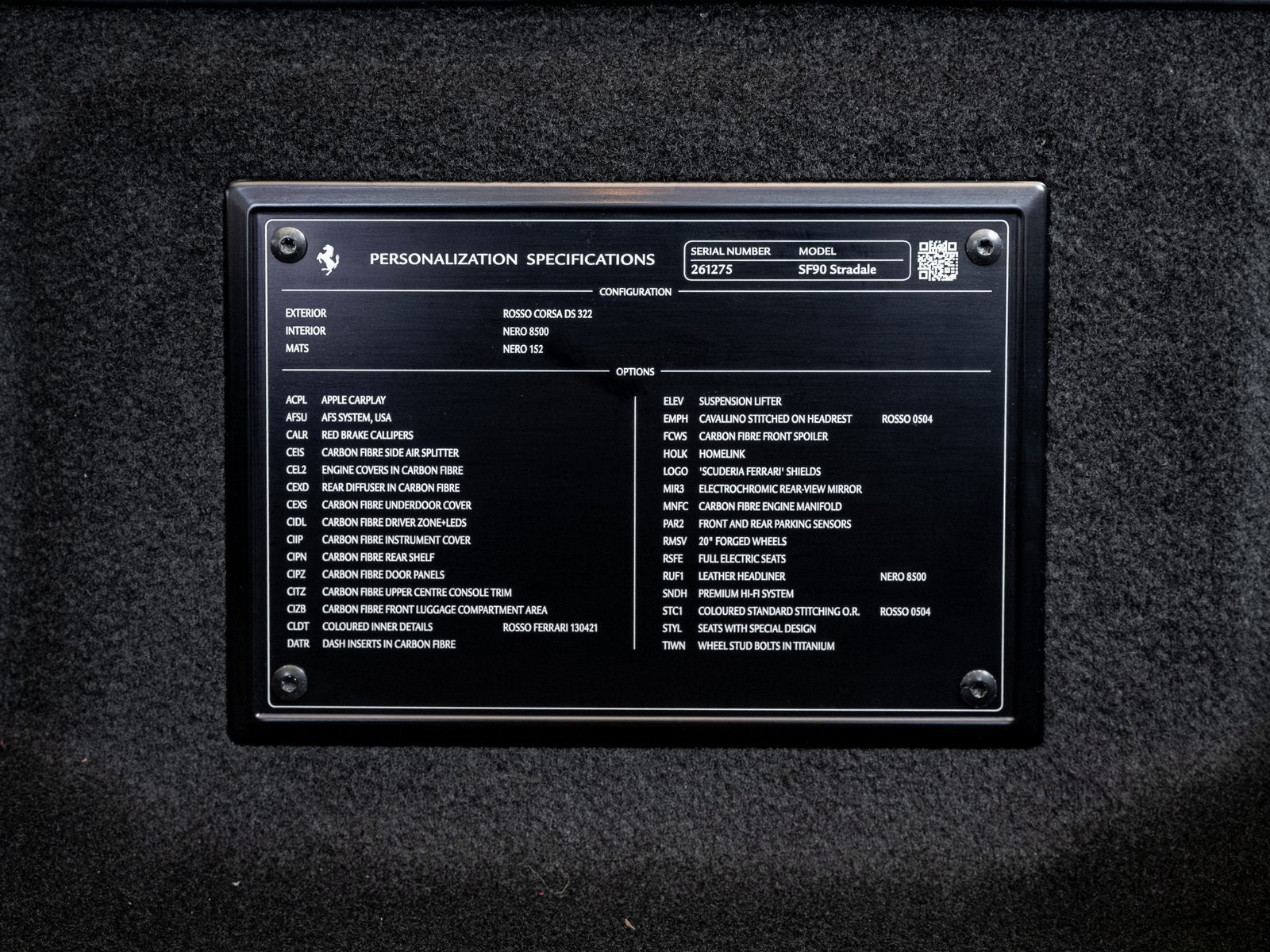 • Carbon Fiber Under-Door Trim: Lightweight side elements that reinforce the SF90s performance aesthetic.