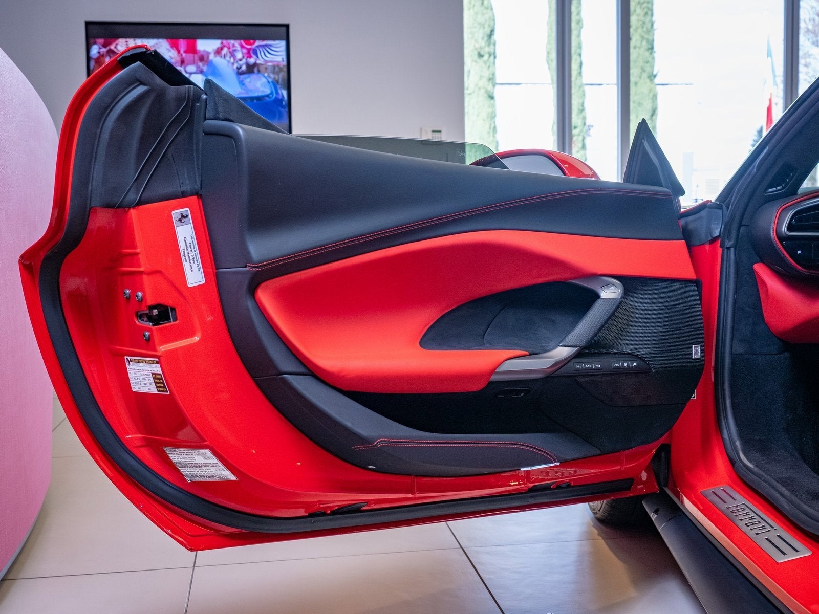 Inside, the richly appointed cabin is finished in premium Rosso Ferrari leather, highlighting Ferrari's dedication to bespoke craftsmanship. A premium Hi-Fi system provides crystal-clear sound, and Apple CarPlay brings intuitive connectivity to the driver. The front and rear suspension lift system ensures clearance over speed bumps and inclines, providing peace of mind without sacrificing performance.