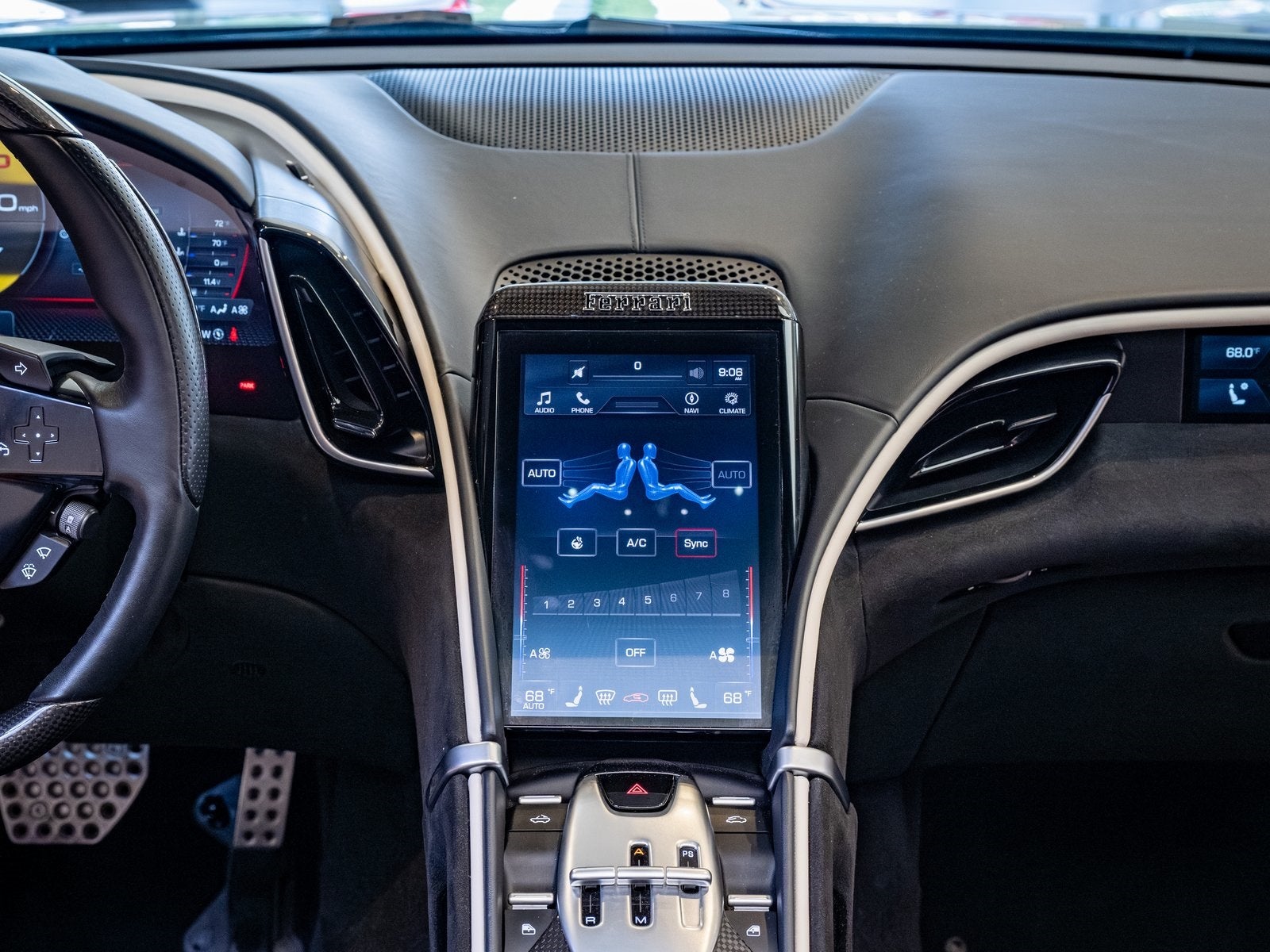 • Carbon Fiber Steering Wheel with LEDs: Offers shift light indicators and multifunction controls for a track-inspired experience.