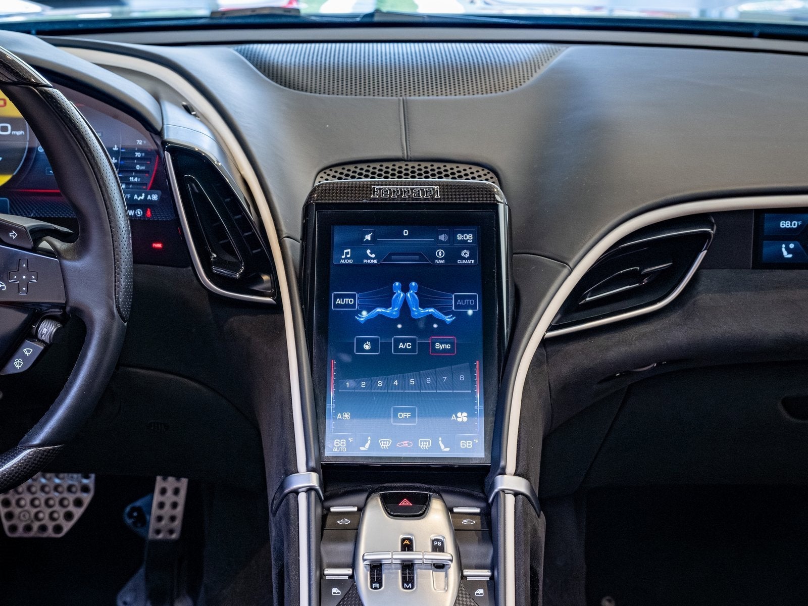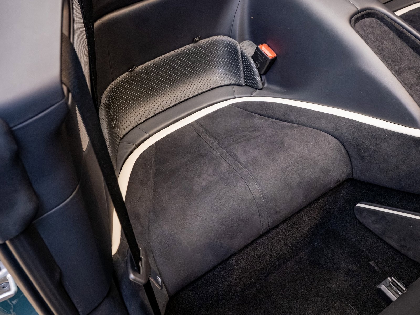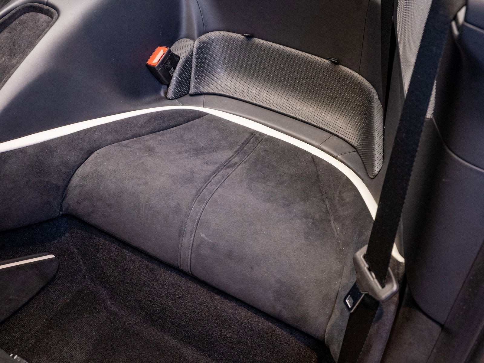 Inside, the cabin is tailored in a sporty yet refined Nero leather and Alcantara interior, offering a perfect balance of texture and contrast. The carbon fiber steering wheel with LEDs provides a driver-focused interface, while the passenger display invites co-pilots into the experience. Full electric ventilated seats ensure year-round comfort, and the added front seat neck warmer makes top-down driving even more enjoyable during cooler days. A premium Hi Fi system rounds out the interior with exceptional sound quality.