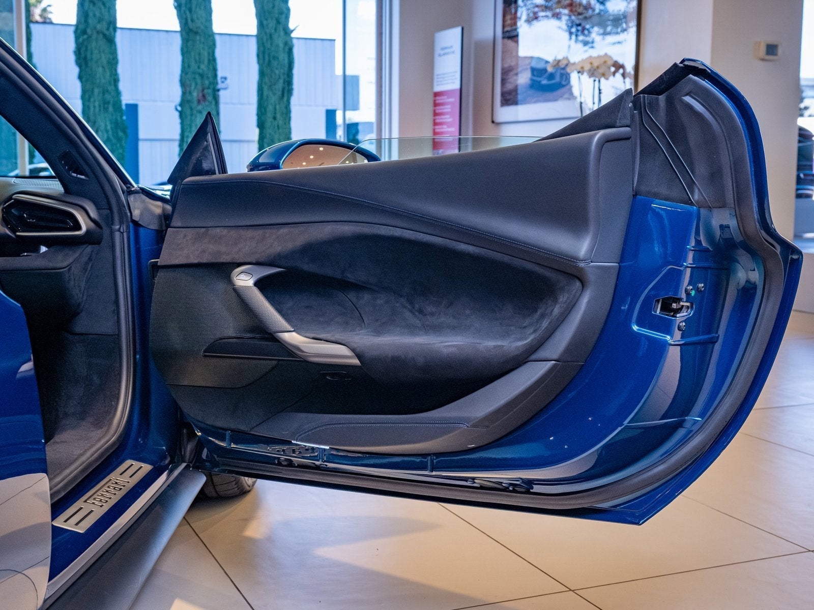 The elegant lines of the 296 GTB are accentuated by its rich blue finish, while thoughtful details such as the Dreamline F1 paddles in Blu Abu Dhabi and carbon fiber steering wheel with LEDs showcase a bespoke level of personalization and precision engineering. The purposeful stance is complemented by a front and rear suspension lift, adding versatility to its road-going capability.