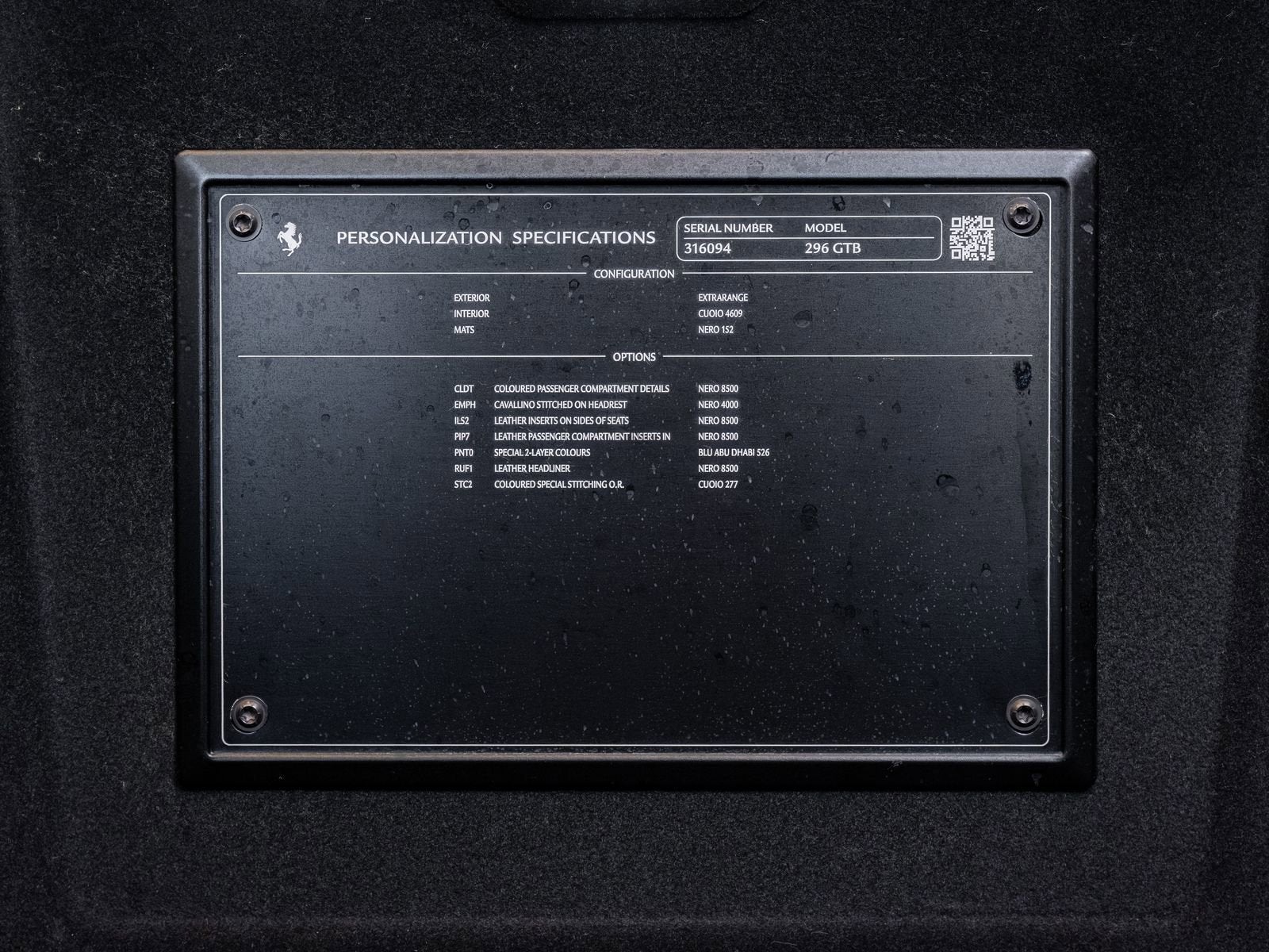 The sculpted design of the 296 GTB is both aggressive and refined, with its flowing lines and compact proportions emphasizing its performance capabilities. This example is enhanced with a carbon fiber exterior sill plate, adding a subtle yet striking motorsport detail, while titanium wheel studs further highlight its race inspired engineering and attention to detail.