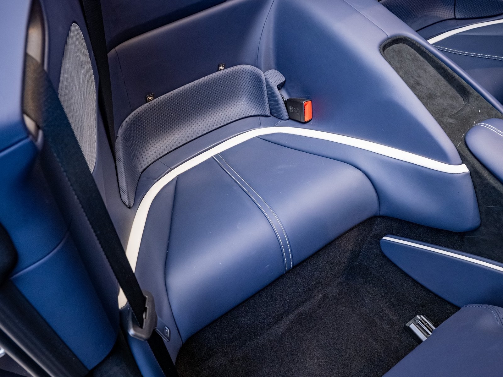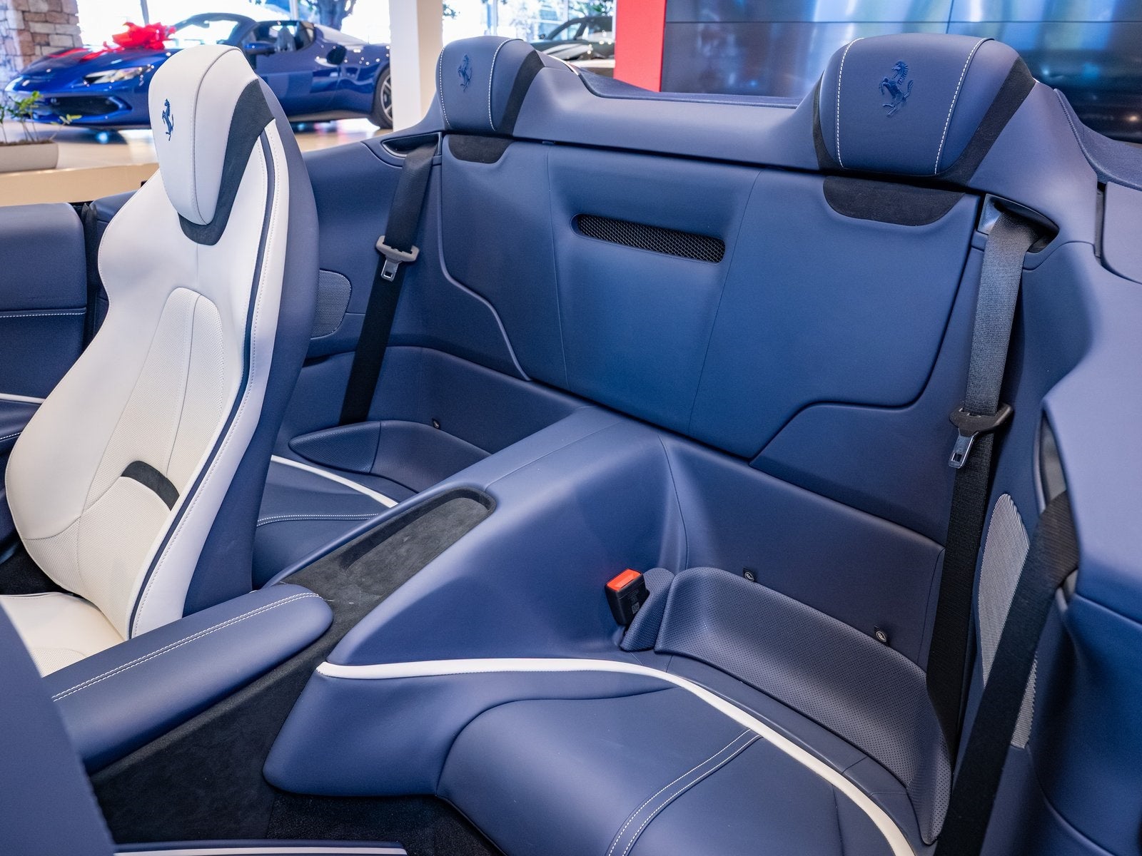 The Roma Spiders graceful proportions and flowing body lines are beautifully accentuated by its Blu Roma finish, offering a modern take on timeless Ferrari style. With its retractable soft top and subtle aerodynamic enhancements, this car offers both top-down freedom and a sleek coupe-like silhouette.